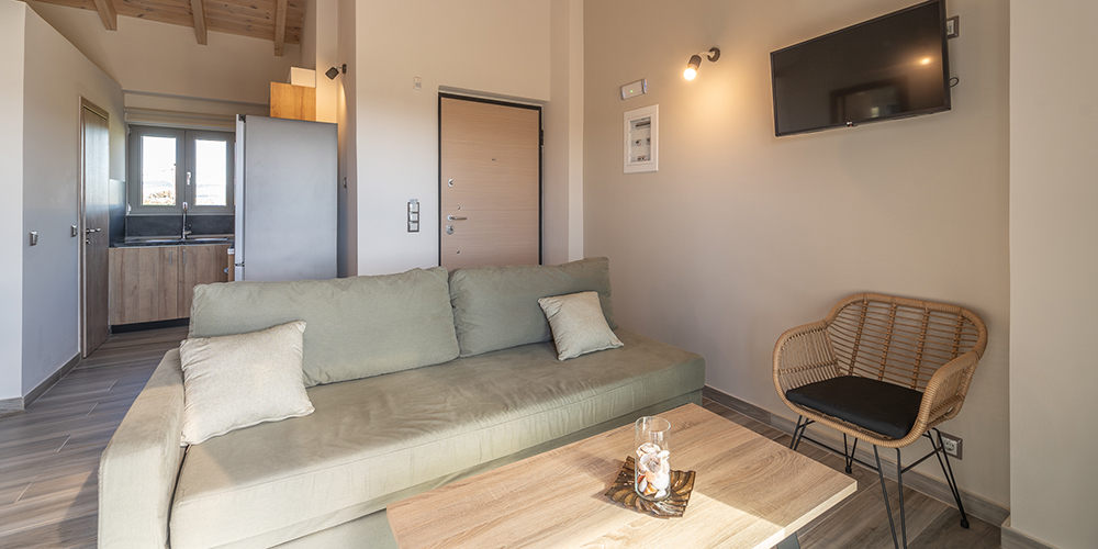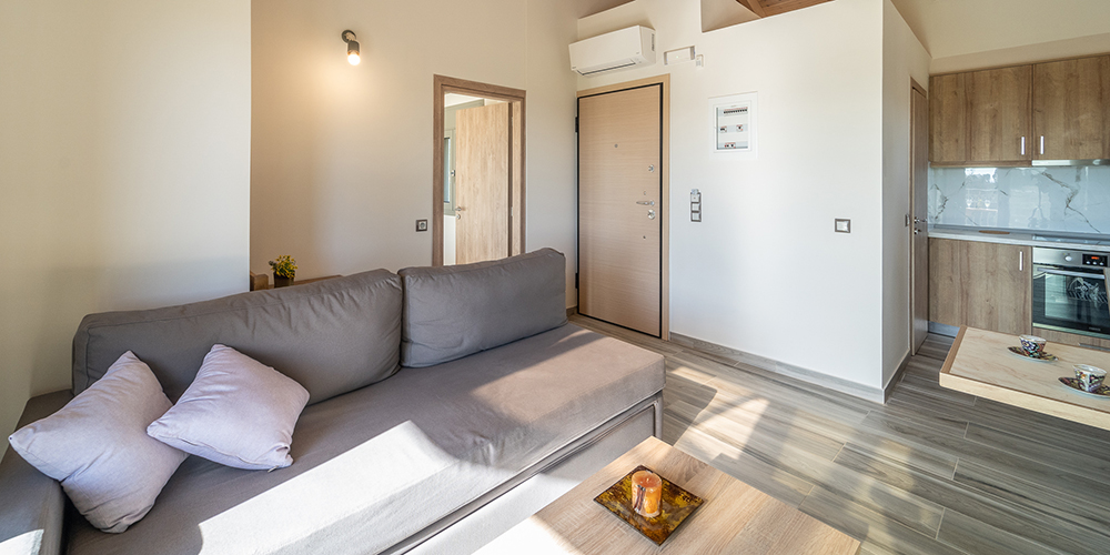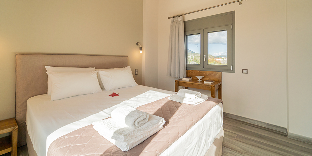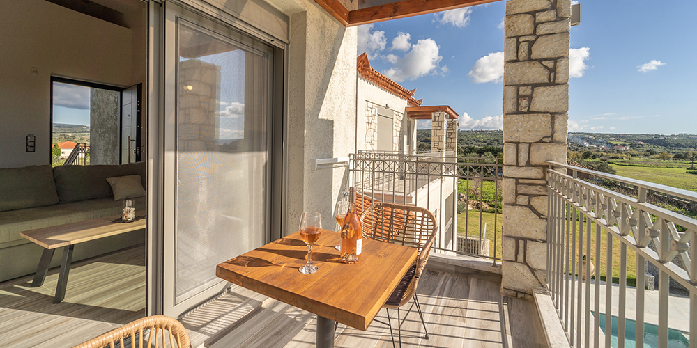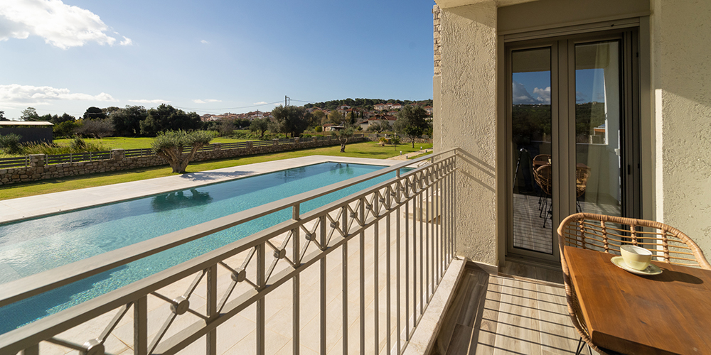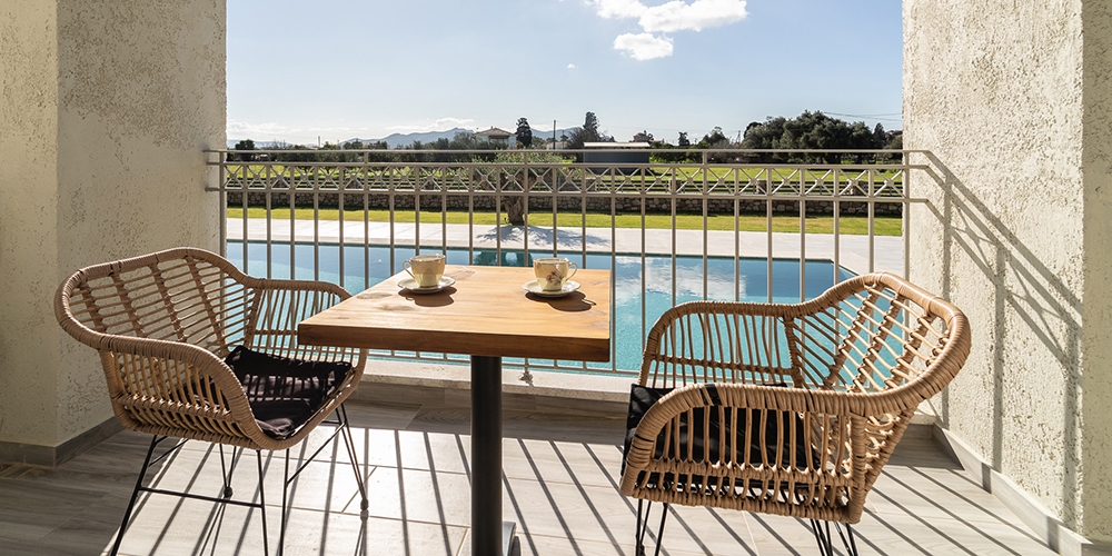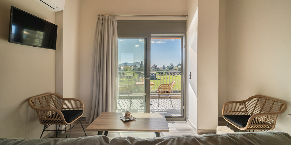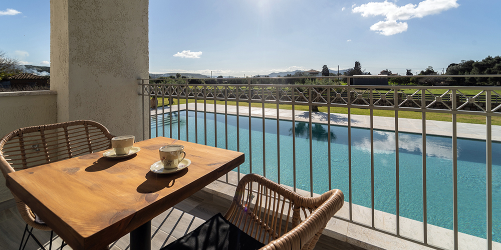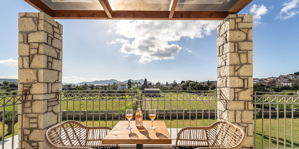 Our newly built accommodation (built in 2020) consists of 4 independent luxury modern suites and a studio. They are built on an area of 3,000 sq.m. next to the settlement of Methoni, unique in natural beauty and stunning views to the bay of Methoni, the island of Sapienza, the traditional settlement of the village and finally the largest castle in the Mediterranean sea . The distance from the rich sandy beach and the famous Venetian castle is 650 meters. All facilities have magnificent views and they are surrounded by a vineyard of about one acre, stone cobbled path, lawn and a garden with various species of fruit trees while at the back extends the vast olive grove of Methoni. The magnificent swimming pool-pool (110 sq.m.) with whirlpool is surrounded by an outdoor area with tables, umbrellas and sun beds, being an exceptional refuge of relaxation and luxury. Next to the pool there is a pool bar where guests can enjoy their breakfast, coffee or any other meal. All suites have a high level of facilities and services to deliver to our customers. More specifically: • 24 hour reception • Services with office equipment (Booking desk, back office, printing etc) • Free WiFi in all areas of the unit • Free parking • Electric car charger three-phase 2*11kw • Outdoor pool with Jacuzzi and stunning views • Smart tv 32 ’ • Air conditioning • 24 hour security • Residential cleaning service • Comfortable mattresses, organic pillows, luxury linens and personal care items. • Possibility of hosting the disabled.