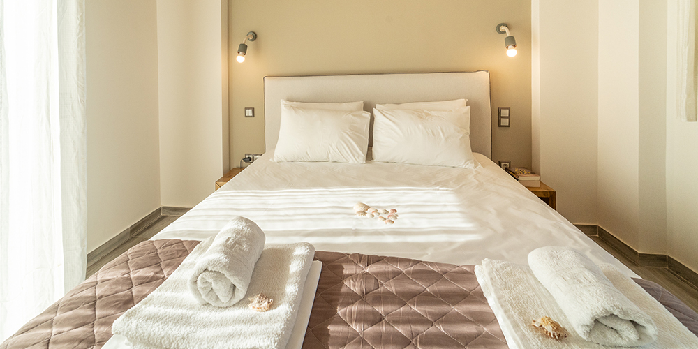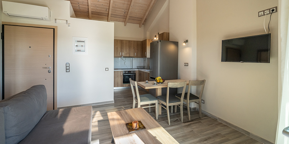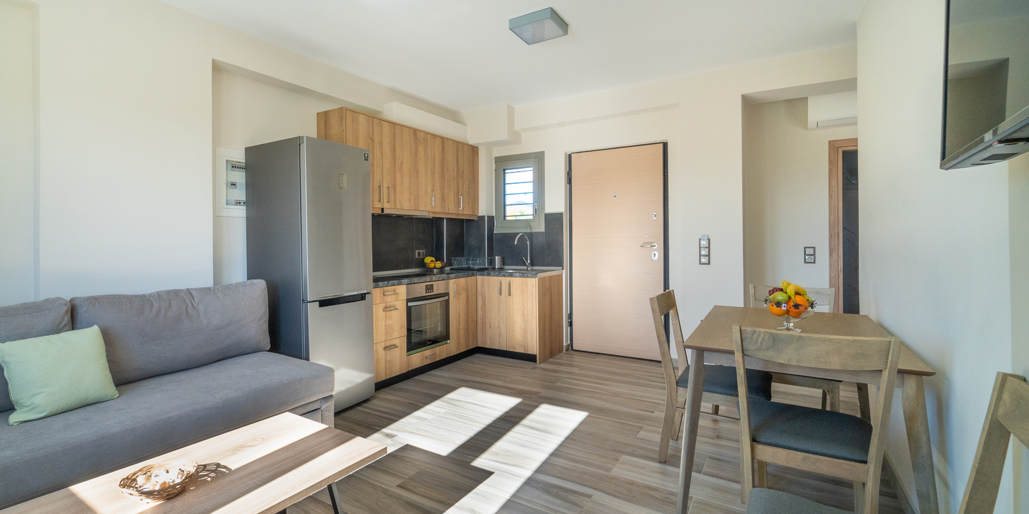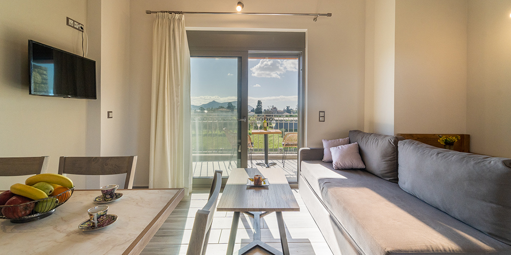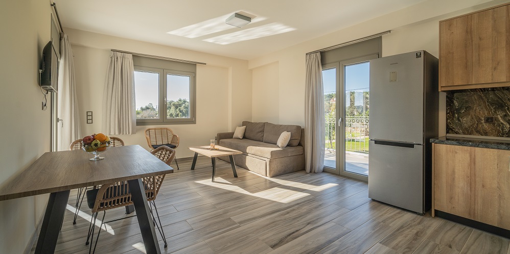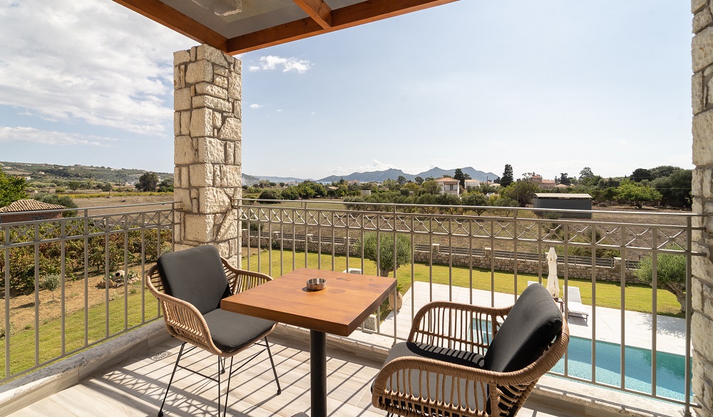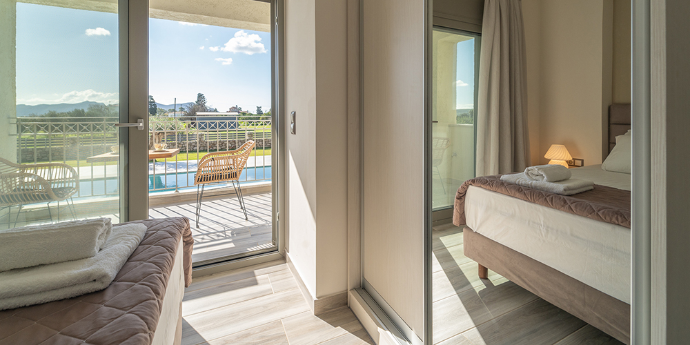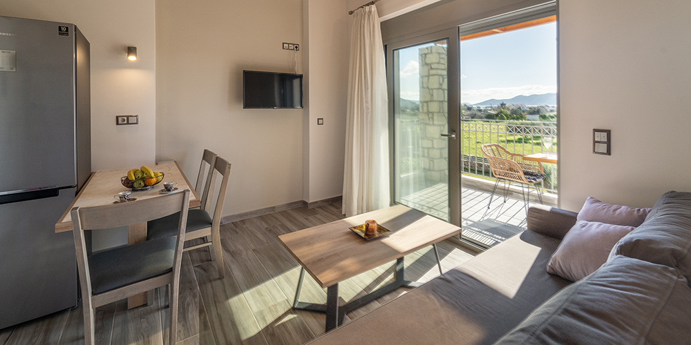 Our newly built accommodation (built in 2020) consists of 4 independent luxury modern suites and a studio. They are built on an area of 3,000 sq.m. next to the settlement of Methoni, unique in natural beauty and stunning views to the bay of Methoni, the island of Sapienza, the traditional settlement of the village and finally the largest castle in the Mediterranean sea . The distance from the rich sandy beach and the famous Venetian castle is 650 meters. All facilities have magnificent views and they are surrounded by a vineyard of about one acre, stone cobbled path, lawn and a garden with various species of fruit trees while at the back extends the vast olive grove of Methoni. The magnificent swimming pool-pool (110 sq.m.) with whirlpool is surrounded by an outdoor area with tables, umbrellas and sun beds, being an exceptional refuge of relaxation and luxury. Next to the pool there is a pool bar where guests can enjoy their breakfast, coffee or any other meal. All suites have a high level of facilities and services to deliver to our customers. More specifically: • 24 hour reception • Services with office equipment (Booking desk, back office, printing etc) • Free WiFi in all areas of the unit • Free parking • Electric car charger three-phase 2*11kw • Outdoor pool with Jacuzzi and stunning views • Smart tv 32 ’ • Air conditioning • 24 hour security • Residential cleaning service • Comfortable mattresses, organic pillows, luxury linens and personal care items. • Possibility of hosting the disabled.